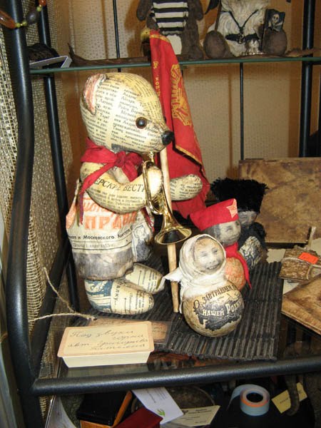 эти изумительные мишки из ГАЗЕТ!! Я вот лично незнаю другого автора живых бумажных мишек,кроме Татьяны Григорьевой. Помню, давным давно, еще до всякого мишкошвейства, пребывая простым обываетелем перед телевизором, мельком видела репортаж с открывшейся выставки. Логически рассуждая, могу предположить,что это была Теддимания. первая или вторая сказать не могу, короче, из всего увиденнного, моя память сохранила только один сюжет- мишка из бумаги. Это было фантастически, в голове моей и тогда не укладывалось, и теперь тоже.. ну как можно идеально сшить газетного мишку?!... тут и с тканевыми проблем хватает.. Короче, я счастлива быть лично знакомой с волшебницей. Вот! Смотрим.